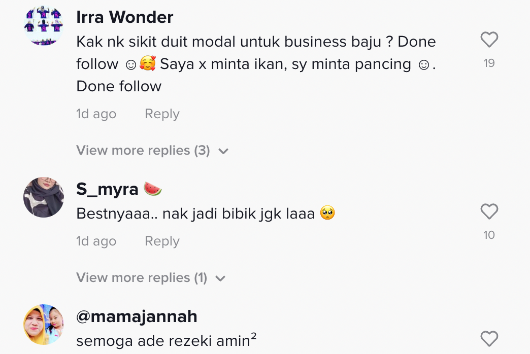 Berikut di bawah adalah antara komen daripada netizen di TikTok: