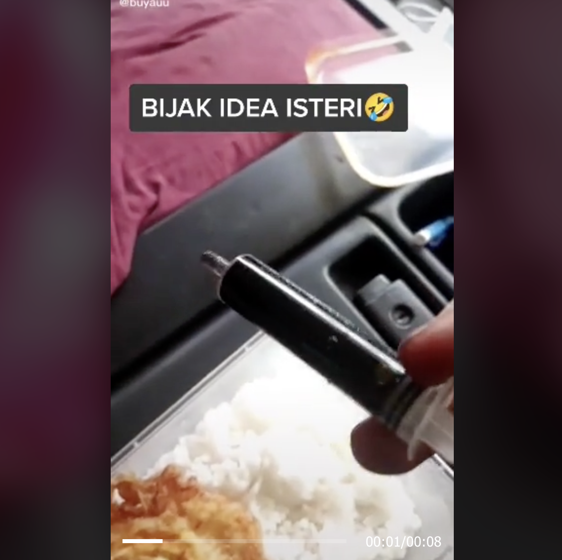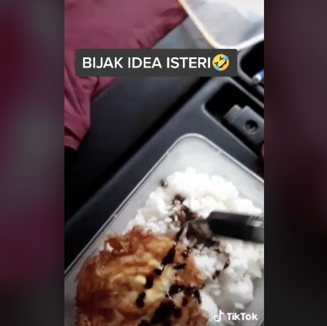Menerusi video yang dikongsi oleh @buyauu, kelihatan seorang lelaki yang baru sahaja ingin menikmati bekal yang disediakan oleh isterinya.