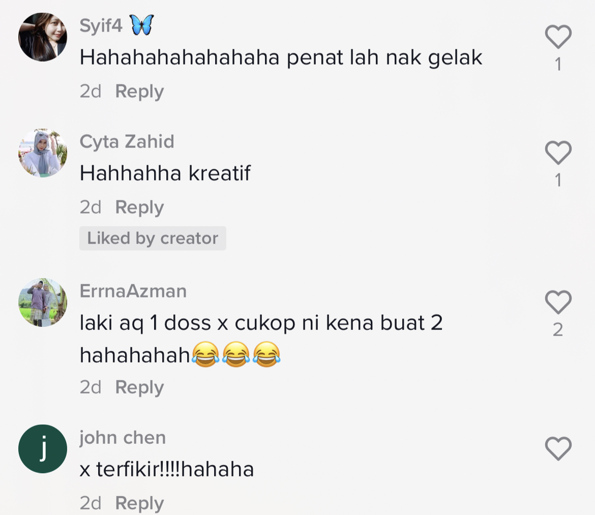 Berikut di bawah adalah antara komen menarik daripada netizen di TikTok: