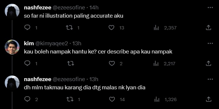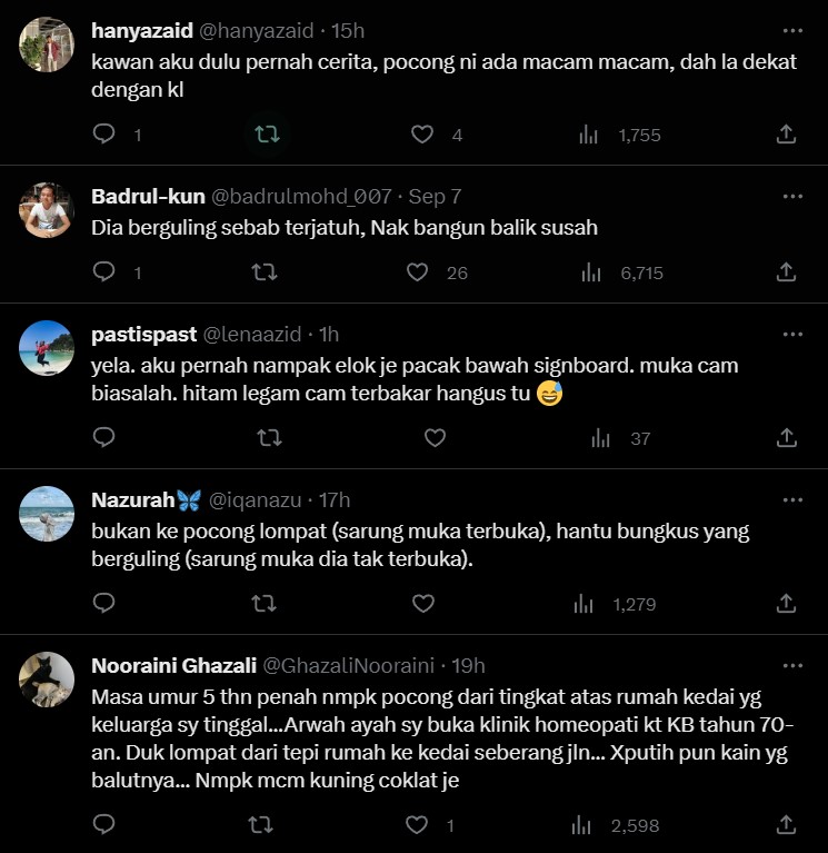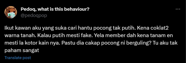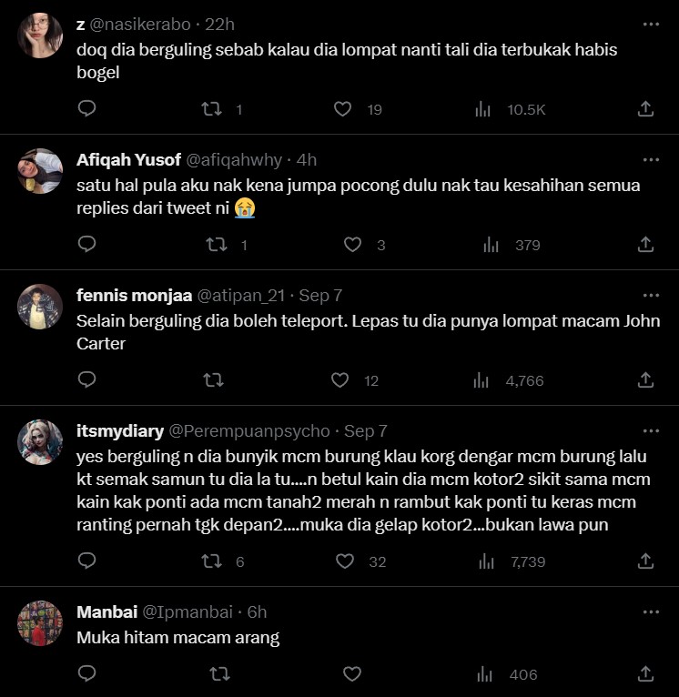 Selain itu terdapat juga quote tweet oleh @pedoqpop membawa perbincangan tentang rupa hantu tersebut yang bukanlah seperti kita jangkakan.