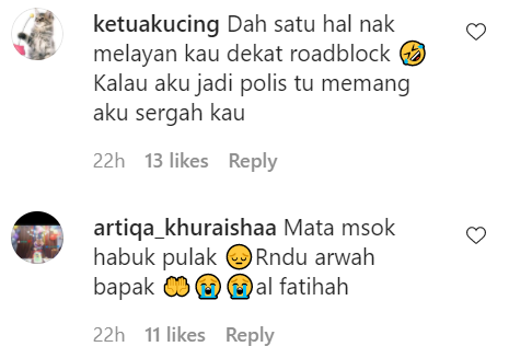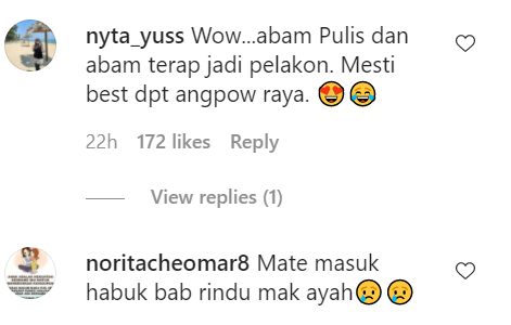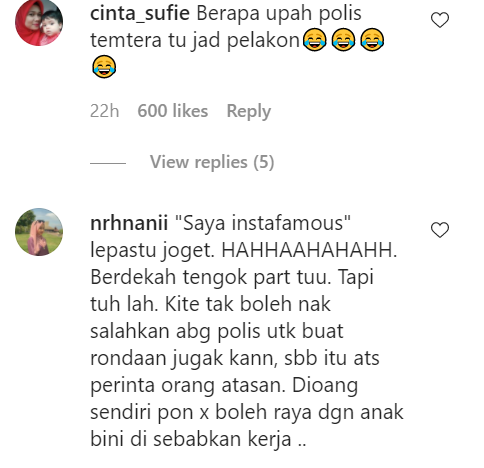Berikut di bawah adalah antara komen menarik daripada netizen di Instagram: