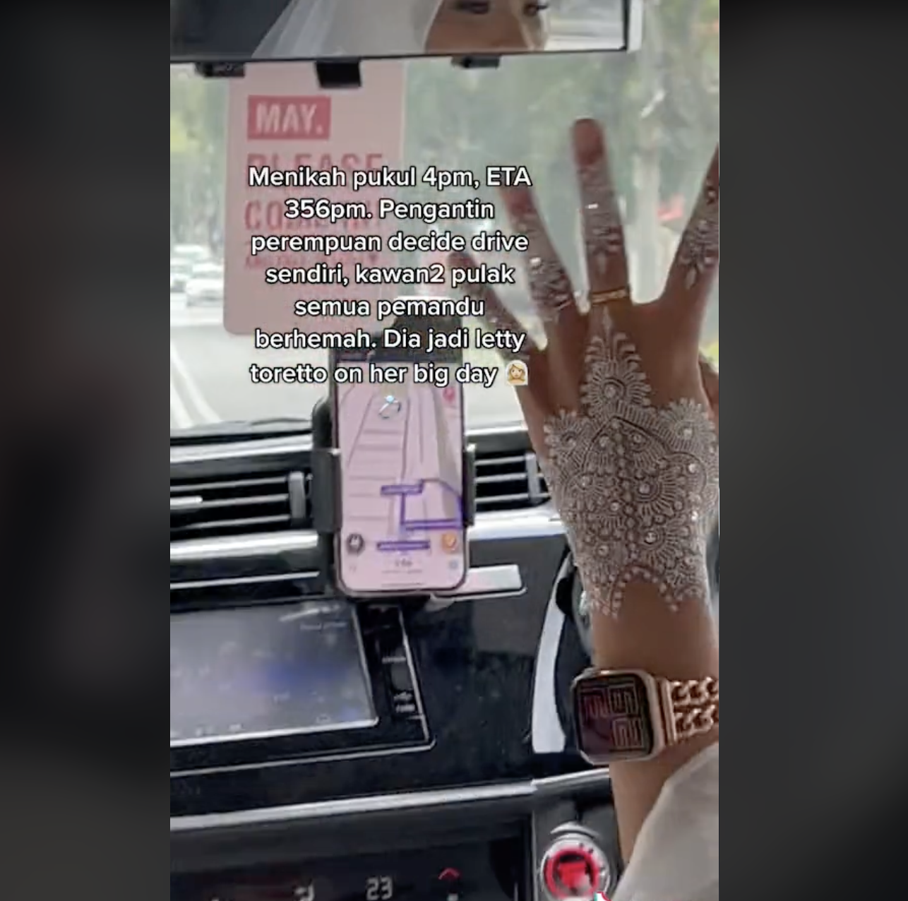 Wanita tersebut sudah lambat untuk menghadiri majlis perkahwinannya tetapi rakan-rakannya memandu dengan sangat 'berhemah'.