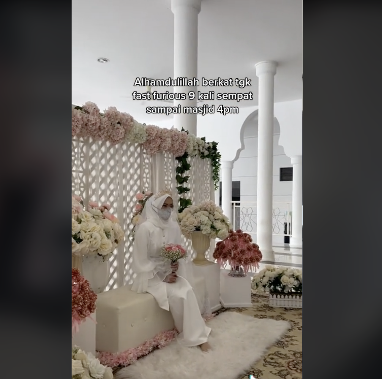 Namun, apa yang lebih mengejutkan ramai adalah apabila wanita tersebut sempat sampai ke masjid tepat pada waktunya. Pada akhir video itu, dia bersama suaminya dilihat selamat diijabkabulkan.