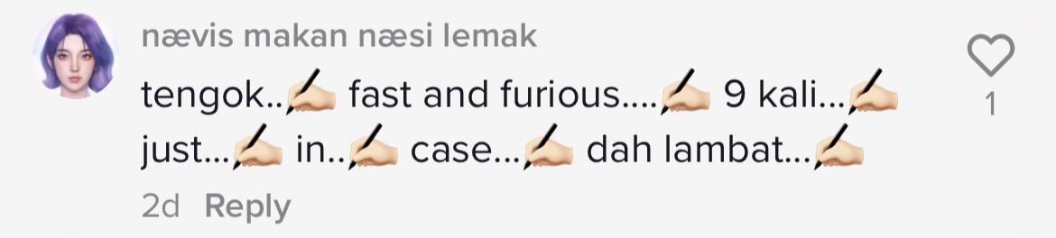 "Berkat tengok Fast and Furios" – Pengantin.