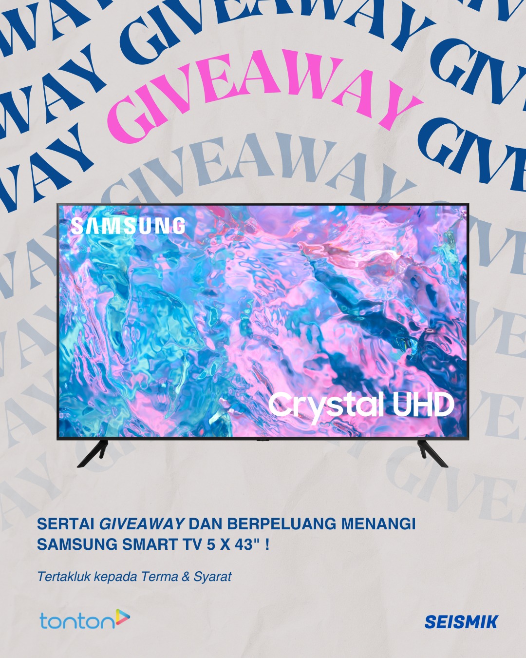 Paling best, anda juga berpeluang menangi Samsung Crystal UHD 43″ Smart TV!