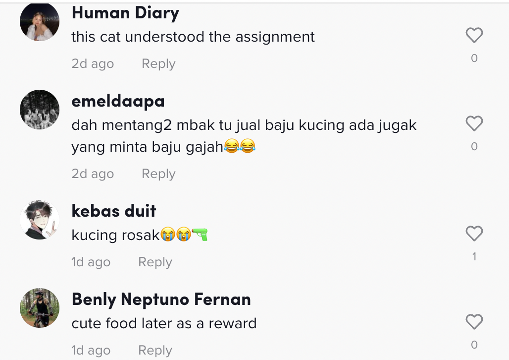 Dalam pada itu, tinjauan di ruangan komen mendapati rata-rata warganet turut tertarik dengan aksi kucing-kucing tersebut yang bijak dan mendengar cakap.