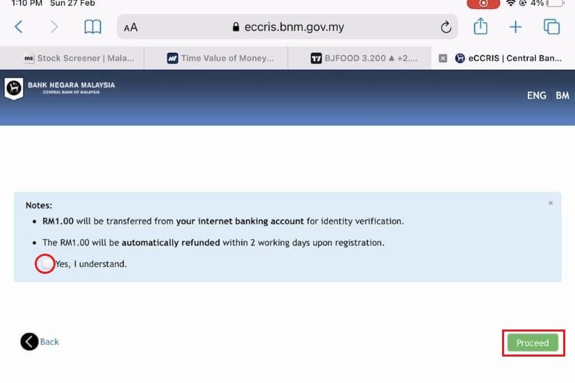 Anda perlu mempunyai Online Banking sendiri untuk bayaran RM1.00 pengesahan maklumat. Untuk makluman juga, RM1 ini akan dipulangkan semula ke akaun anda dalam masa 2 hari waktu bekerja selepas pendaftaran berjaya.