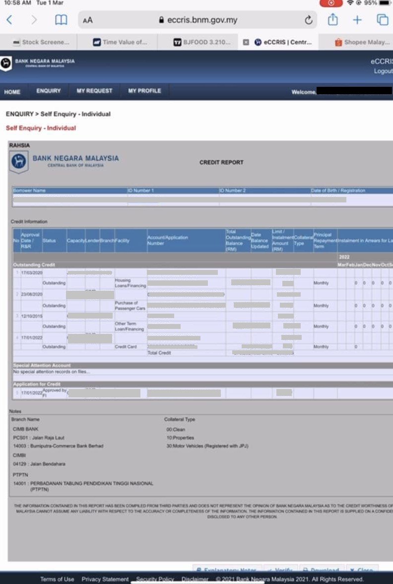 CCRIS ini adalah penting kerana ia menyimpan semua pangkalan data dan semua rekod permohonan yang menunjukkan gambaran penuh kewangan anda.