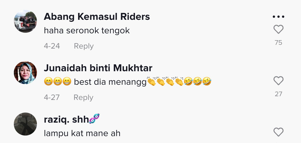 Dalam pada itu, tinjauan di ruangan komen mendapati rata-rata netizen turut terhibur dan memberikan pelbagai reaksi mereka.