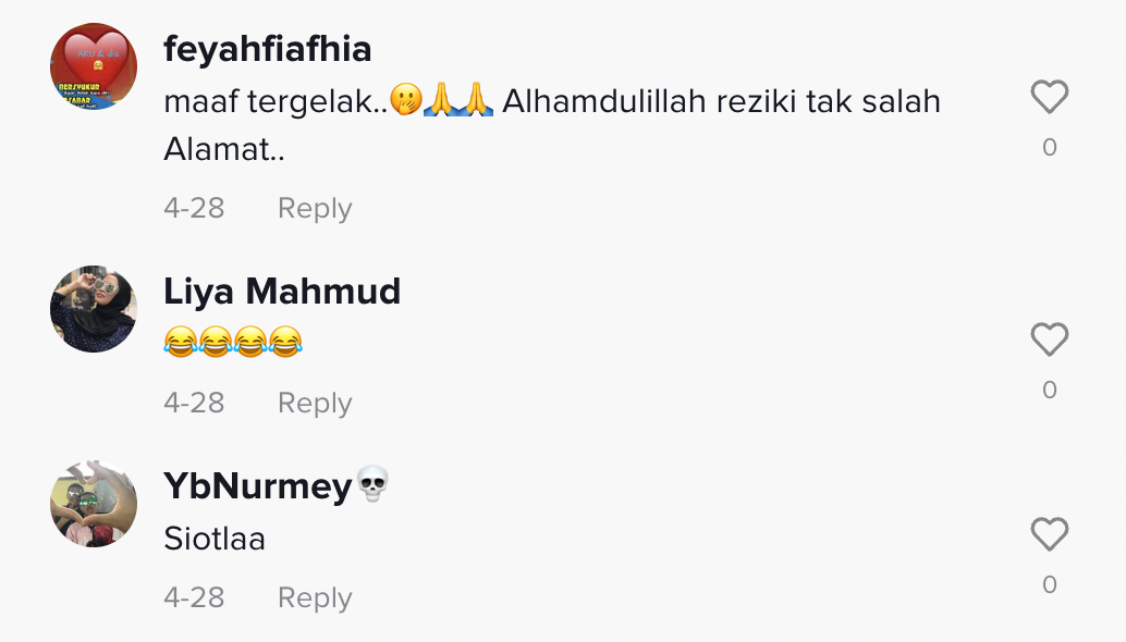 Berikut di bawah adalah antara komen daripada netizen di TikTok: