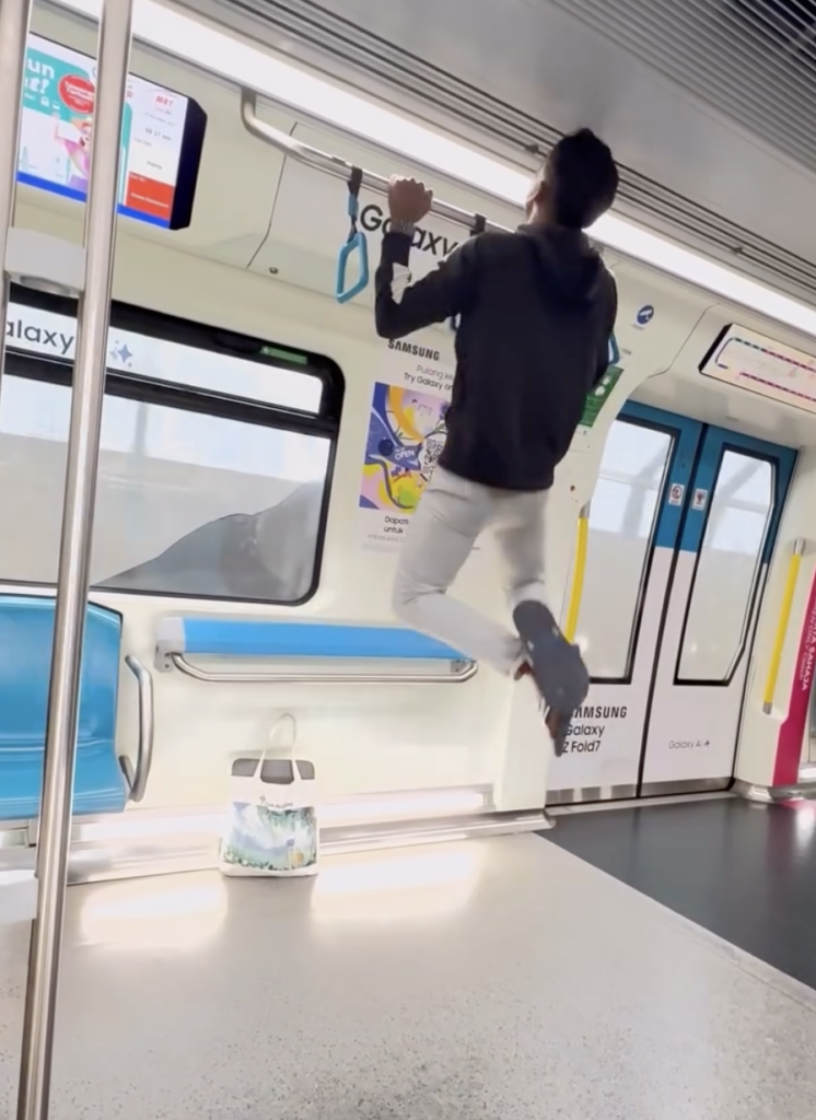 Tindakan seorang lelaki melakukan senaman pull-up menggunakan palang dalam koc MRT mencetuskan rasa kurang senang dalam kalangan pengguna pengangkutan awam, selepas rakaman kejadian itu tular di media sosial