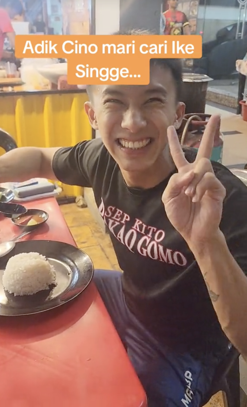 Difahamkan, pemuda Cina itu berasal dari Kota Bharu, Kelantan dan lauk kegemaran pemuda itu adalah singgang ikan bersama budu.