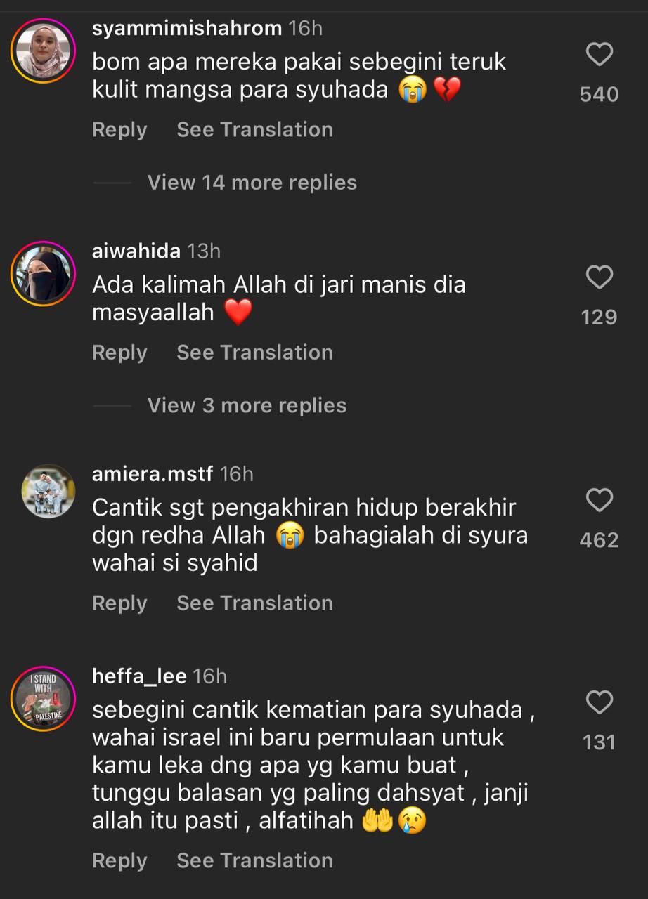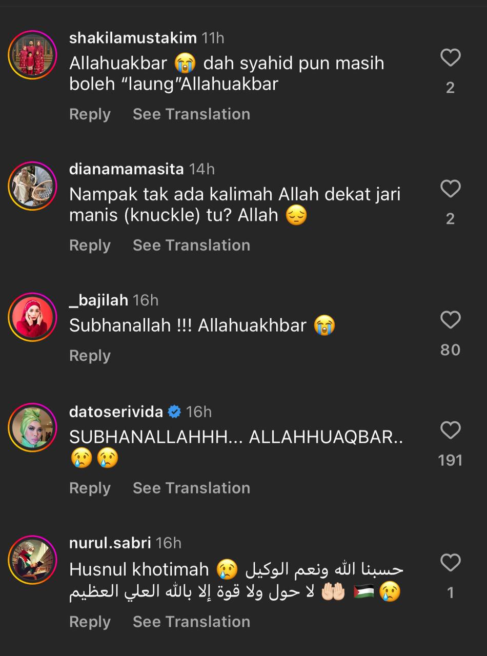 Menerusi hantaran yang telah dikongsi oleh Datin Seri Nur Heliza Helmi di Instagramnya, hari ini, memaparkan seorang lelaki telah gugur sebagai syahid dalam serangan rejim Zionis Israel di Gaza semalam.