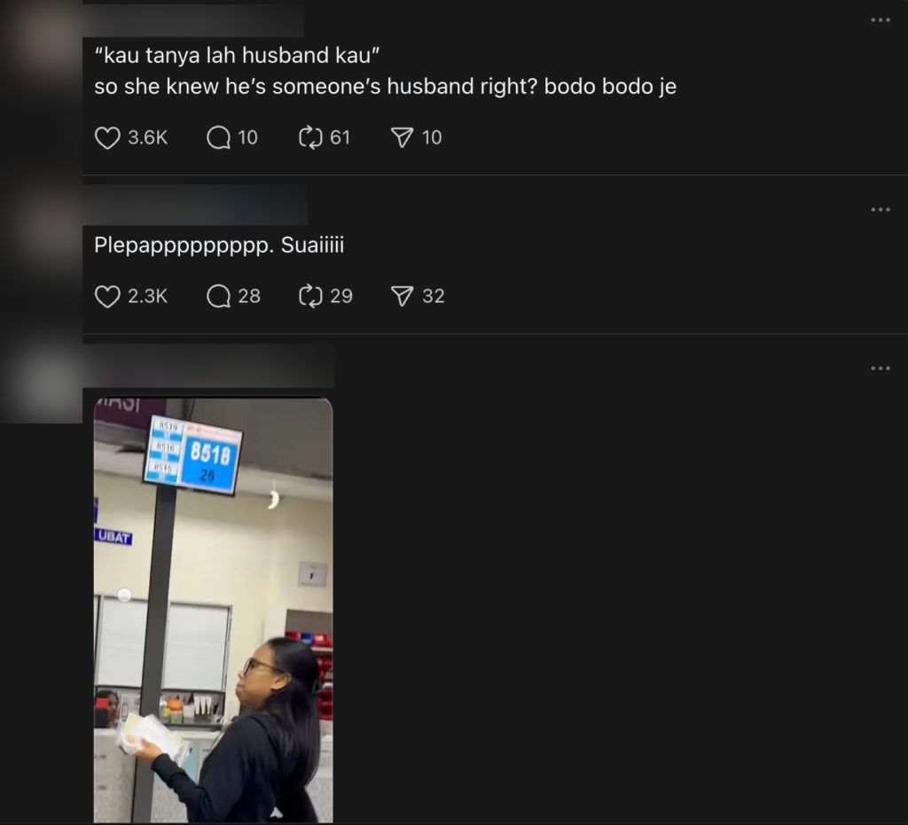 Menerusi perkongsian video di Threads, lelaki berkenaan dilihat berada di kaunter farmasi bersama seorang wanita yang didakwa skandalnya. Difahamkan, mereka sedang mengambil ubat sebelum beredar.