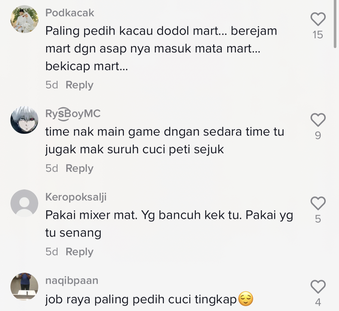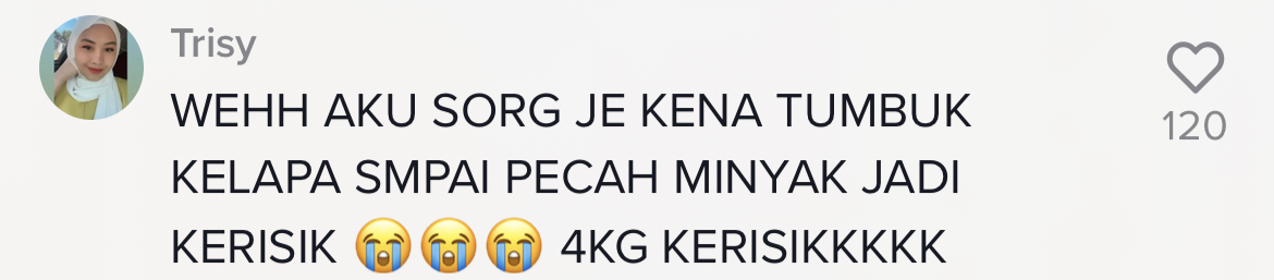 "Weh aku sorang saja ke kena tumbuk kelapa sampai pecah minyak jadi kerisik? 4 kg kerisik!" – Netizen