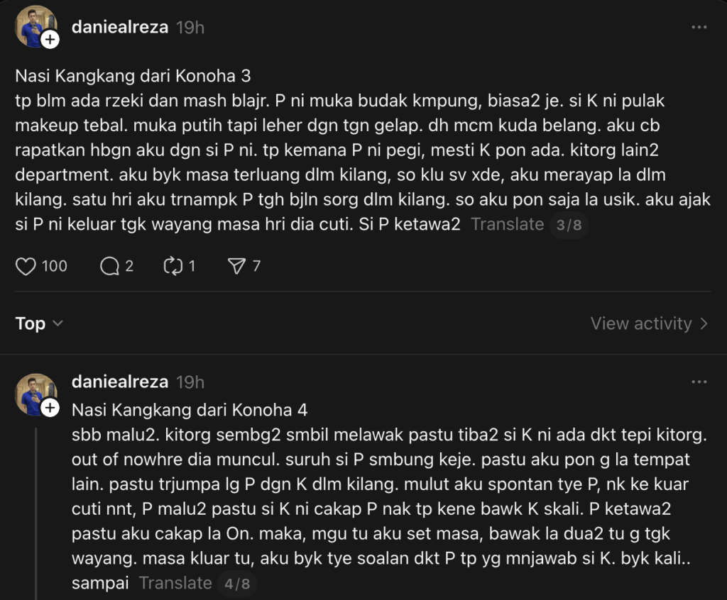Baru-baru ini, tular di laman Threads seorang lelaki berkongsi pengalamannya selepas termakan 'nasi kangkang' warga Indonesia, yang dipercayai rakan sekerjanya