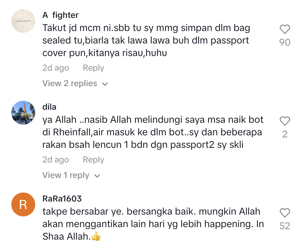 "Salah aku juga pasal pasport basah, tak alert benda gini," tulisnya.