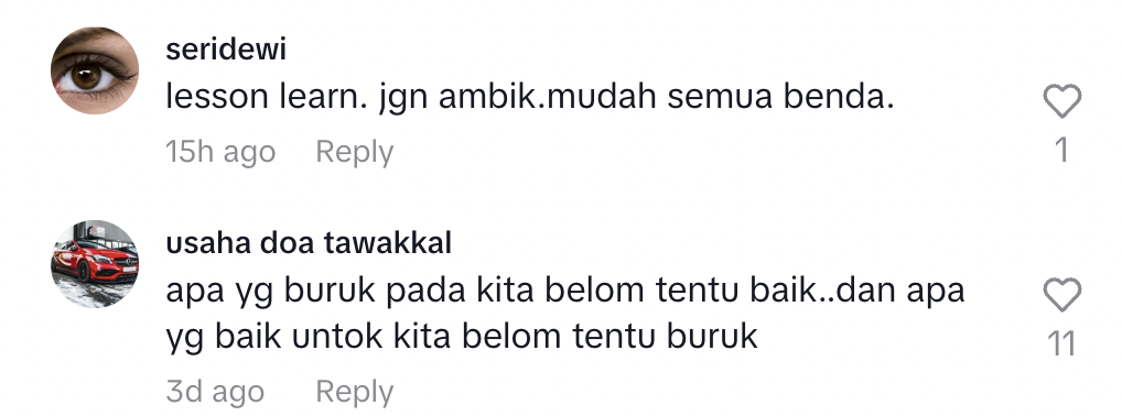 Berikut di bawah adalah antara komen daripada netizen di TikTok: