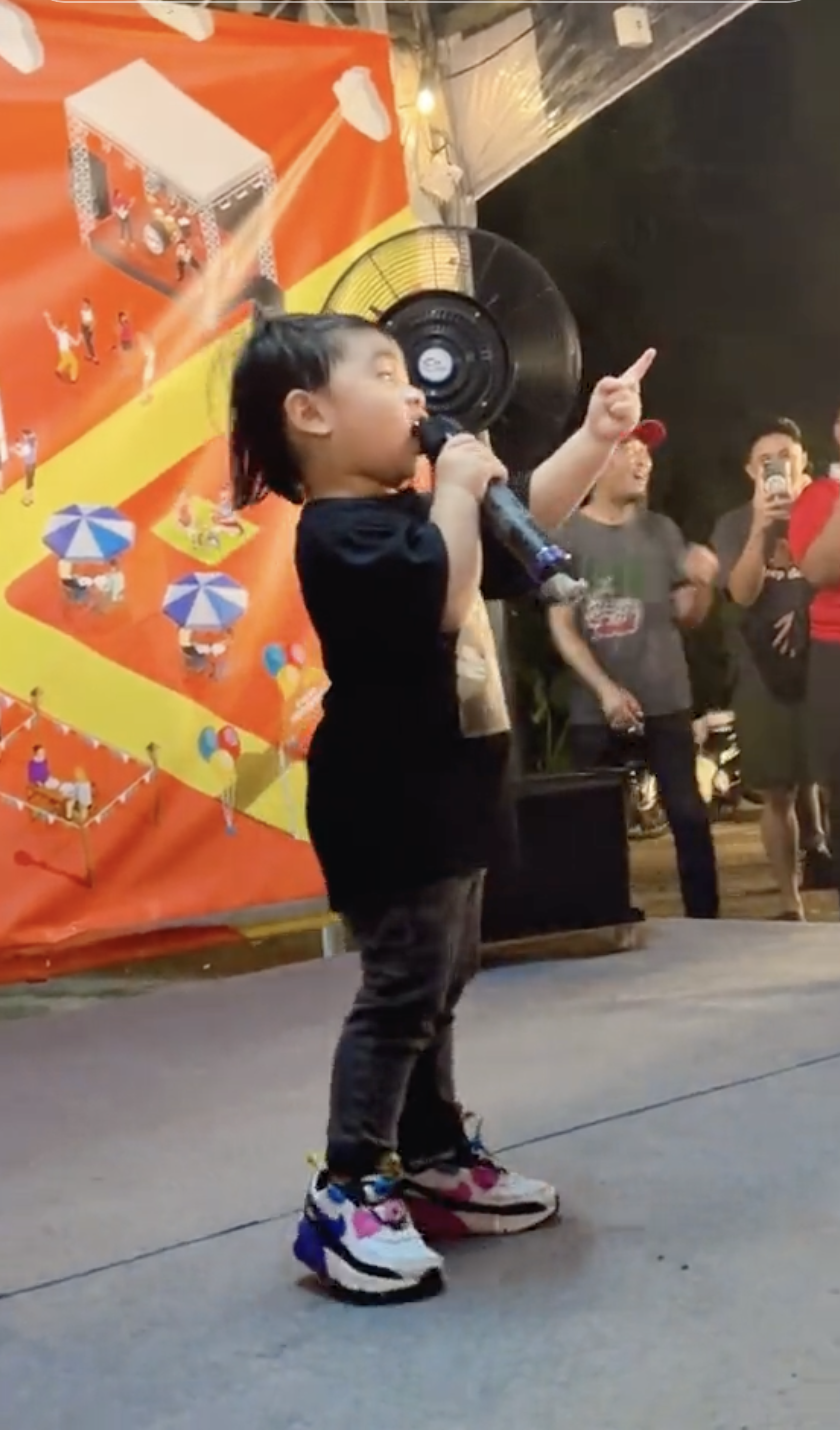 Menerusi video tersebut, kelihatan budak lelaki itu dilihat sedang menyanyikan sambil diperhatikan oleh pengunjung di sana.