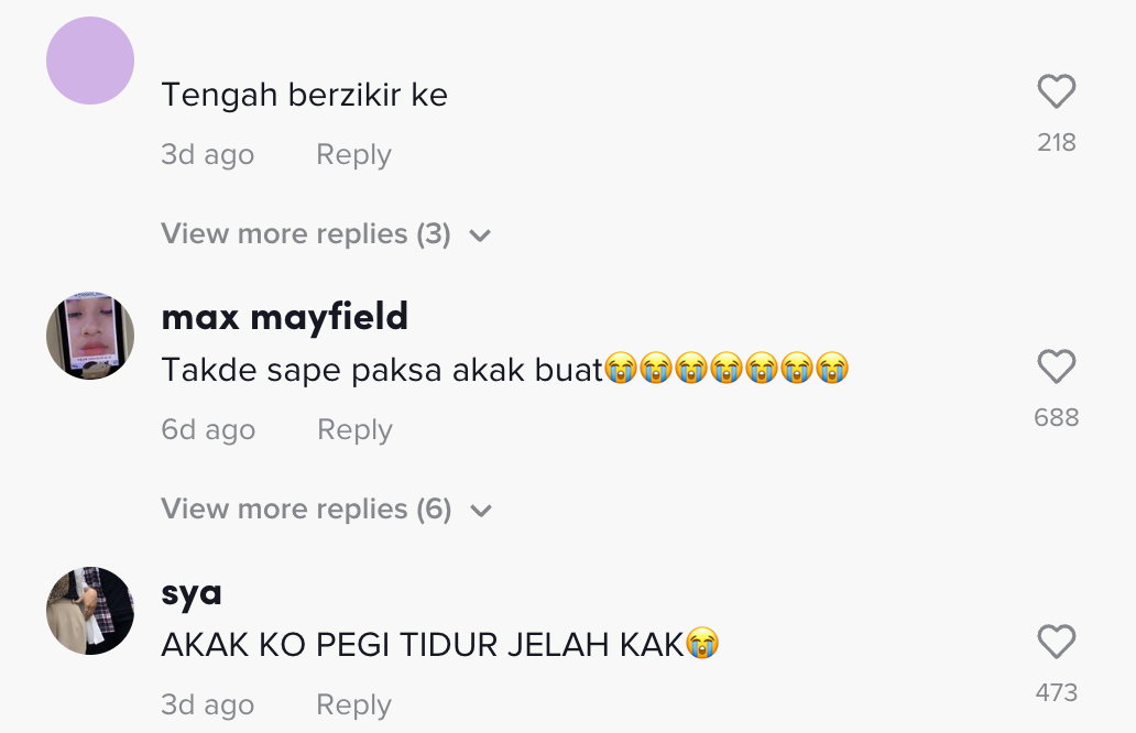 Berikut di bawah adalah antara komen daripada netizen di TikTok: