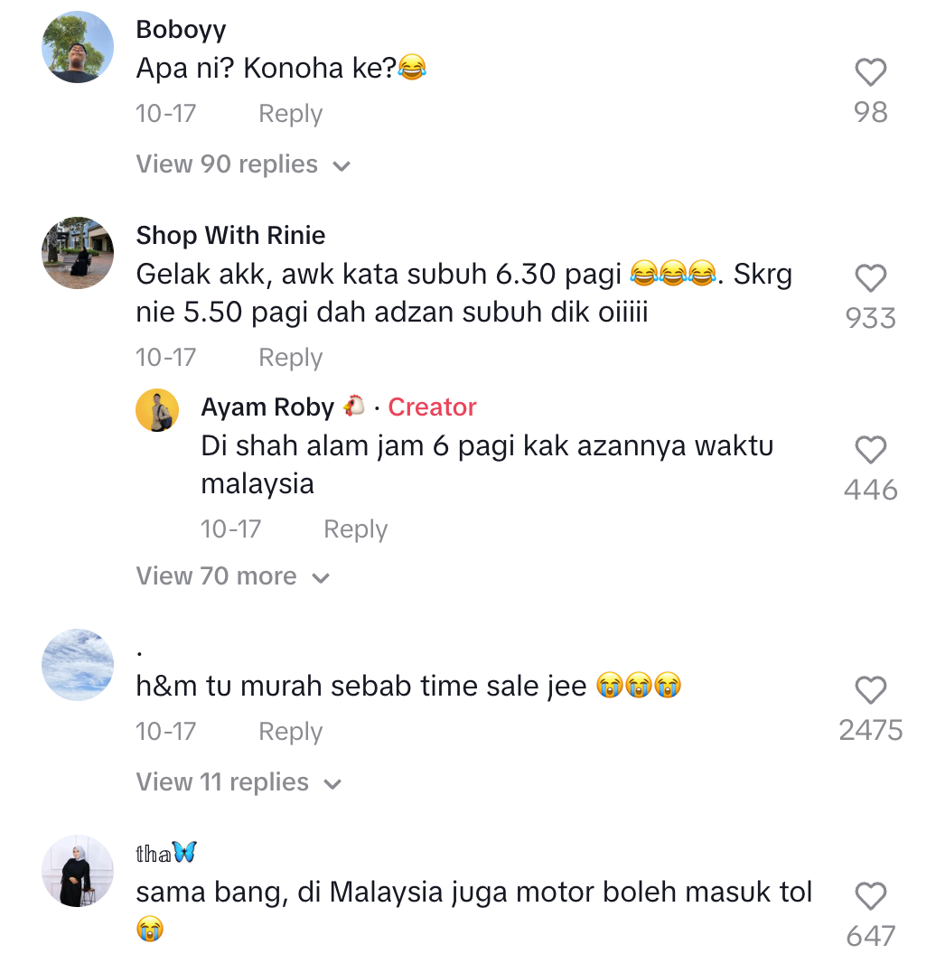 Berikut di bawah adalah antara komen daripada netizen di TikTok: