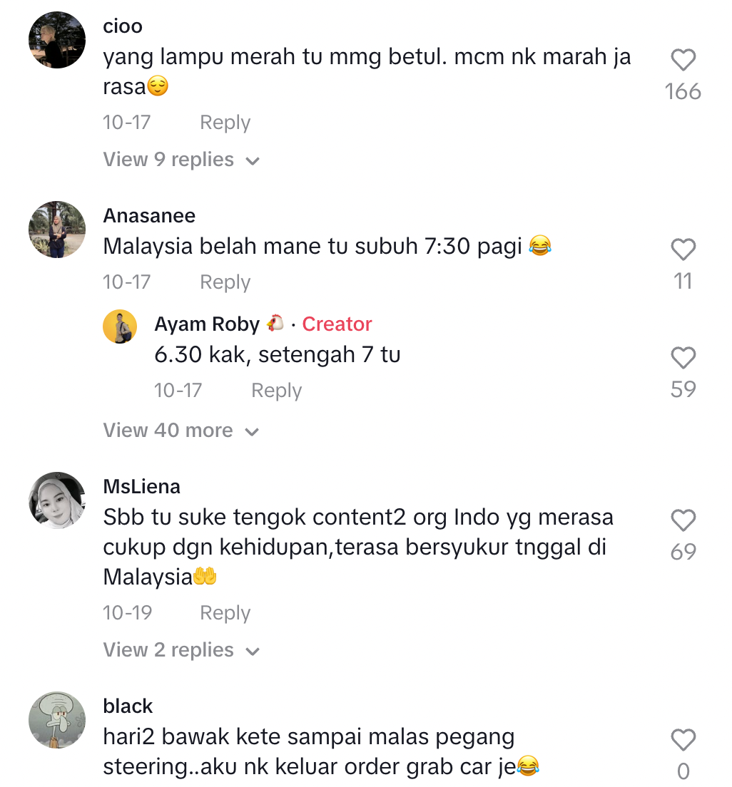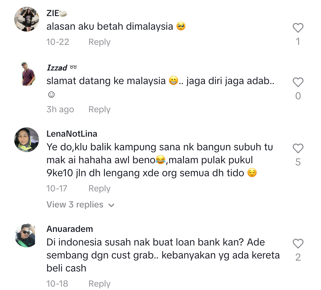 "Sebab tu suka tengok content-content orang Indonesia yang merasa cukup dengan kehidupan" – Netizen