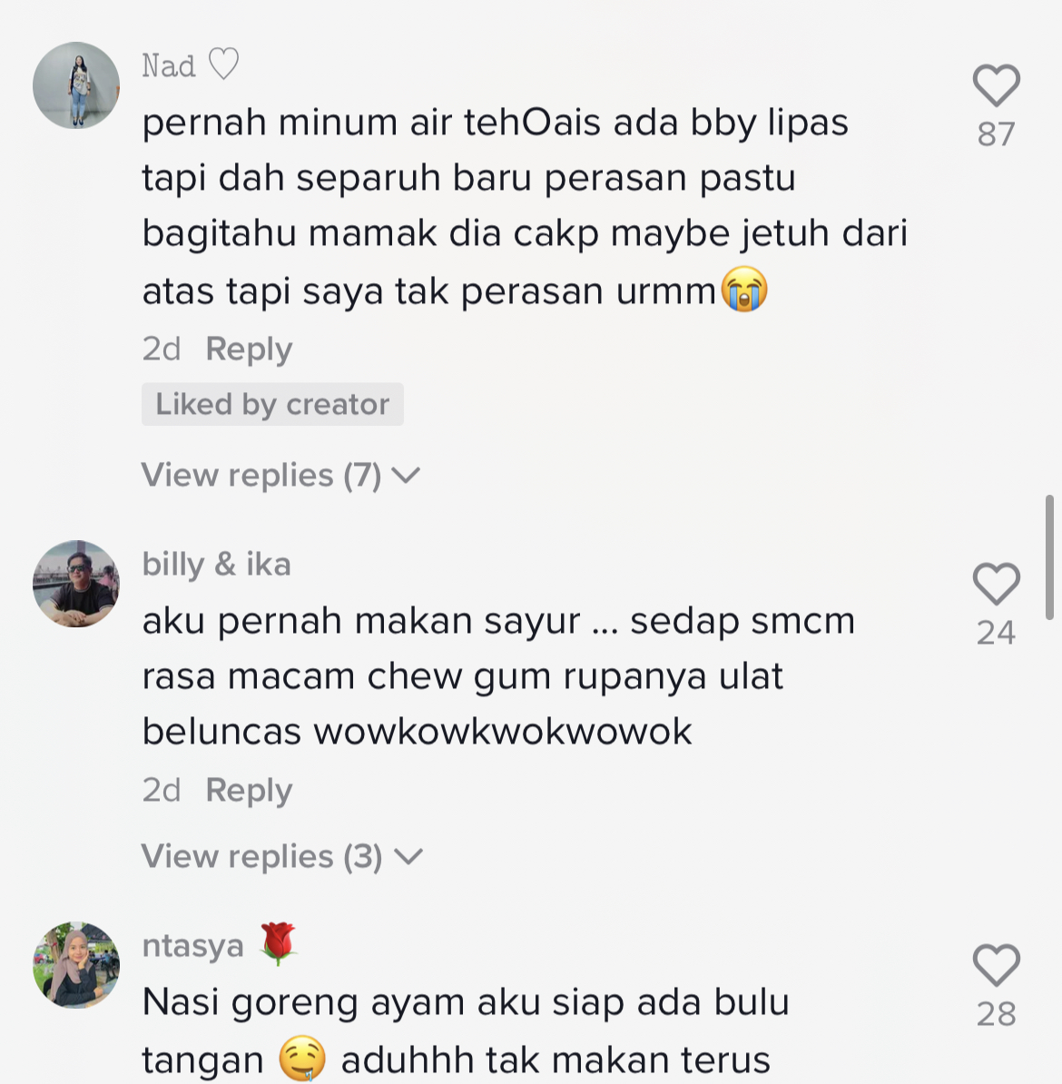 Berikut di bawah adalah antara komen menarik daripada netizen di TikTok: