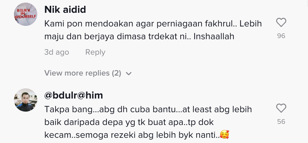 Berikut di bawah adalah antara komen daripada netizen di TikTok: