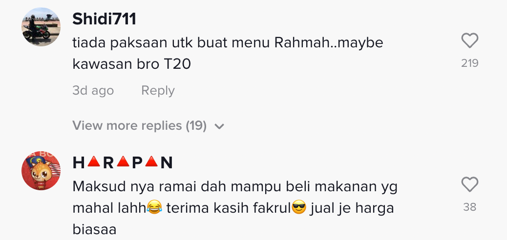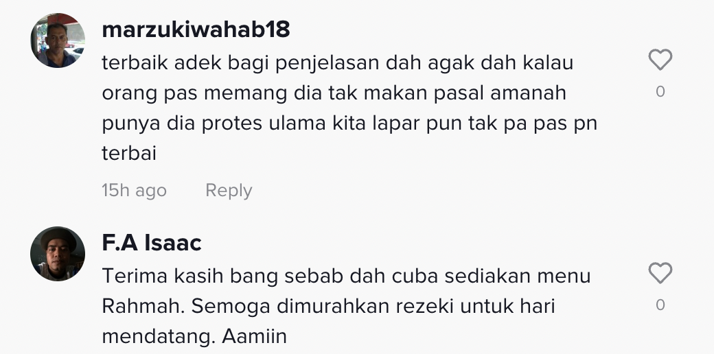 "Terima kasih bang sebab dah cuba sediakan Menu Rahmah" – Netizen