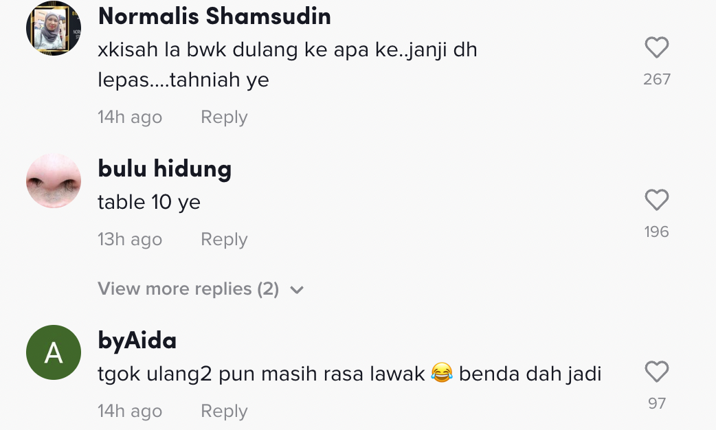 Berikut di bawah adalah antara komen daripada netizen di TikTok: