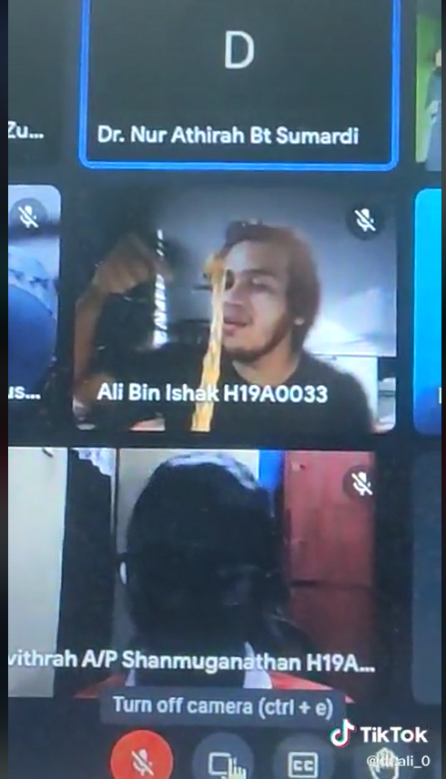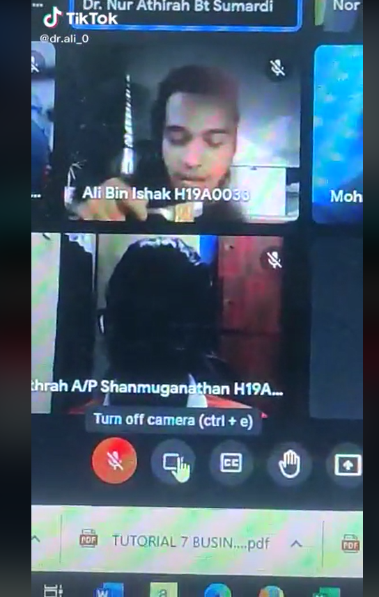 Menerusi video tersebut, kelihatan sedang berlangsungnya kelas online oleh sekumpulan pelajar universiti menerusi panggilan video call.