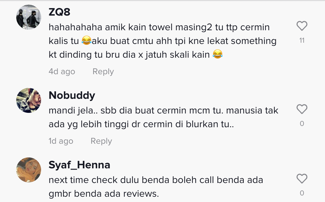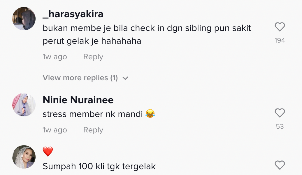 Dalam pada itu, tinjauan di ruangan komen mendapati rata-rata netizen turut terhibur dan ada yang berkongsi pengalaman sama mereka mengenainya.