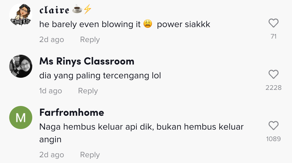 Berikut di bawah adalah antara komen menarik daripada netizen di TikTok: