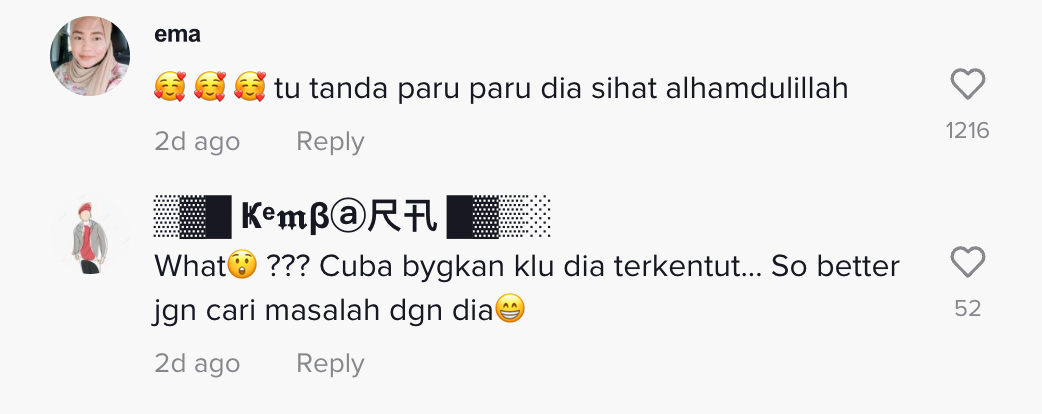 "Tu tanda paru-paru dia sihat, alhamdulillah" – Netizen