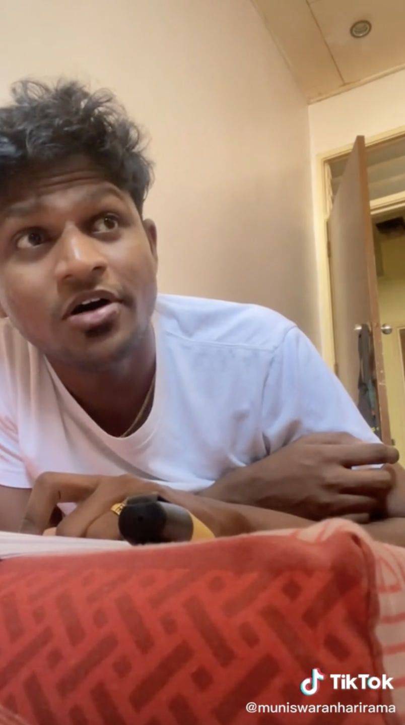 Menerusi video yang dimuat naik oleh @muniswaranharirama di TikTok, kelihatan seorang lelaki sedang membaca skrip di dalam sebuah bilik.