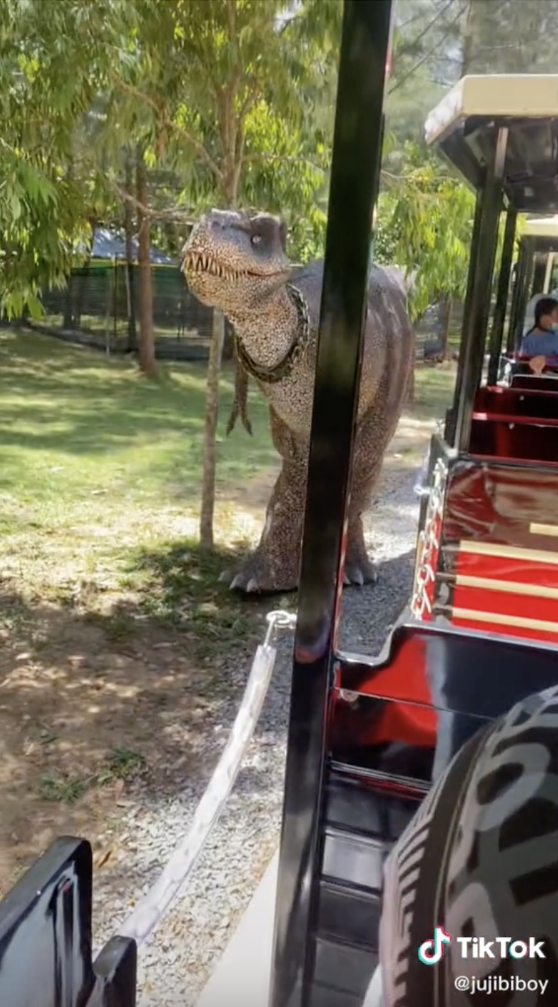 “Macam Real” – Jumpa Dinosaur Masa Naik Train, Reaksi Budak Lelaki Ini Buat Ramai Terhibur
