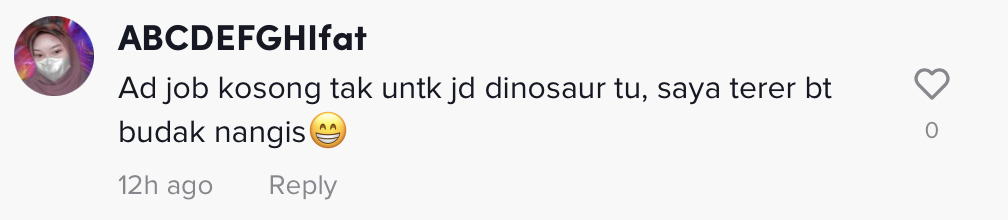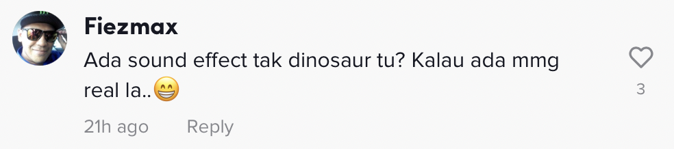 Namun, apa yang menghiburkan ramai adalah reaksi budak lelaki di dalam video tersebut yang kelihatan sangat takut dengan dinosaur.