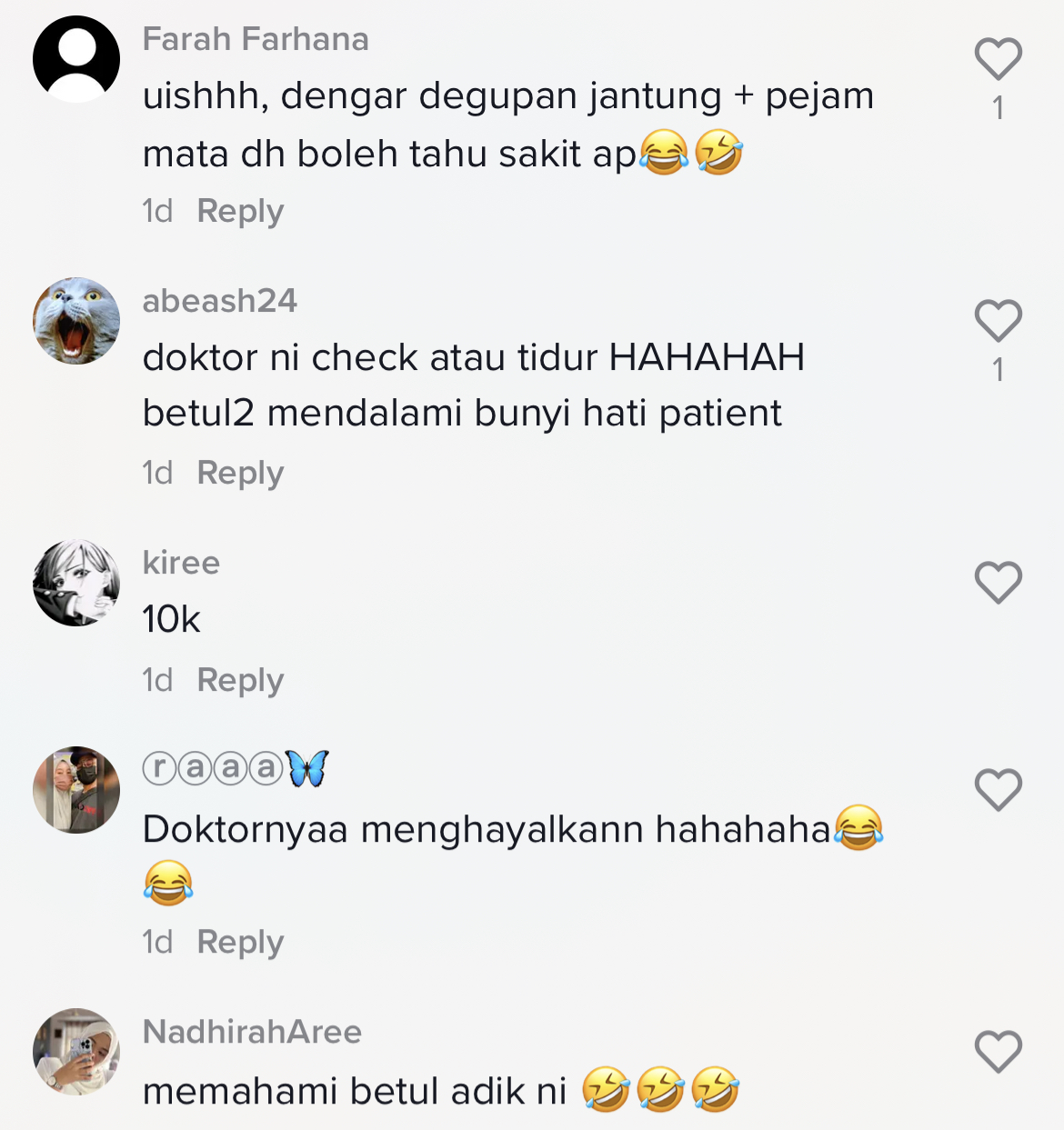 "Doktor ni check atau tidur? Hahaha, betul-betul mendalami bunyi hati patient" – Netizen