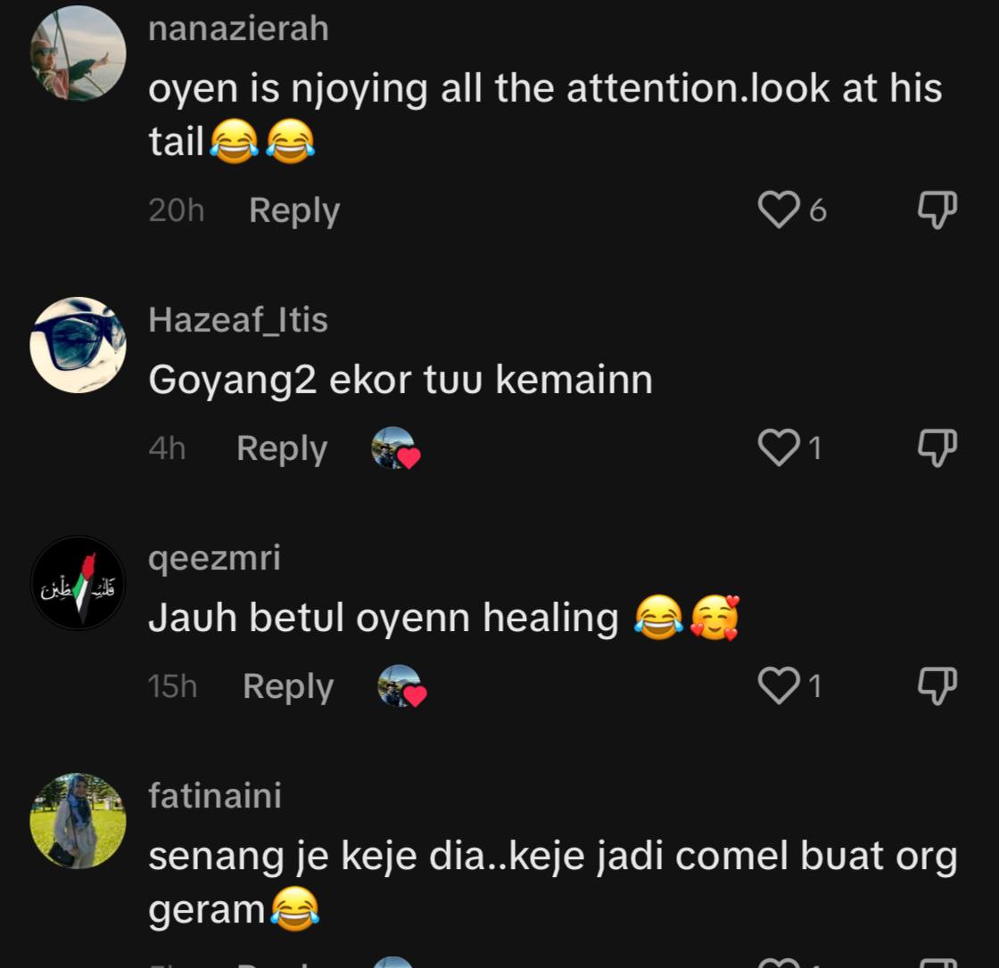 Menerusi video berkenaan juga dapat dilihat bahawa ramai yang tertarik untuk mengambil gambar kucing Oyen yang persis seorang artis.