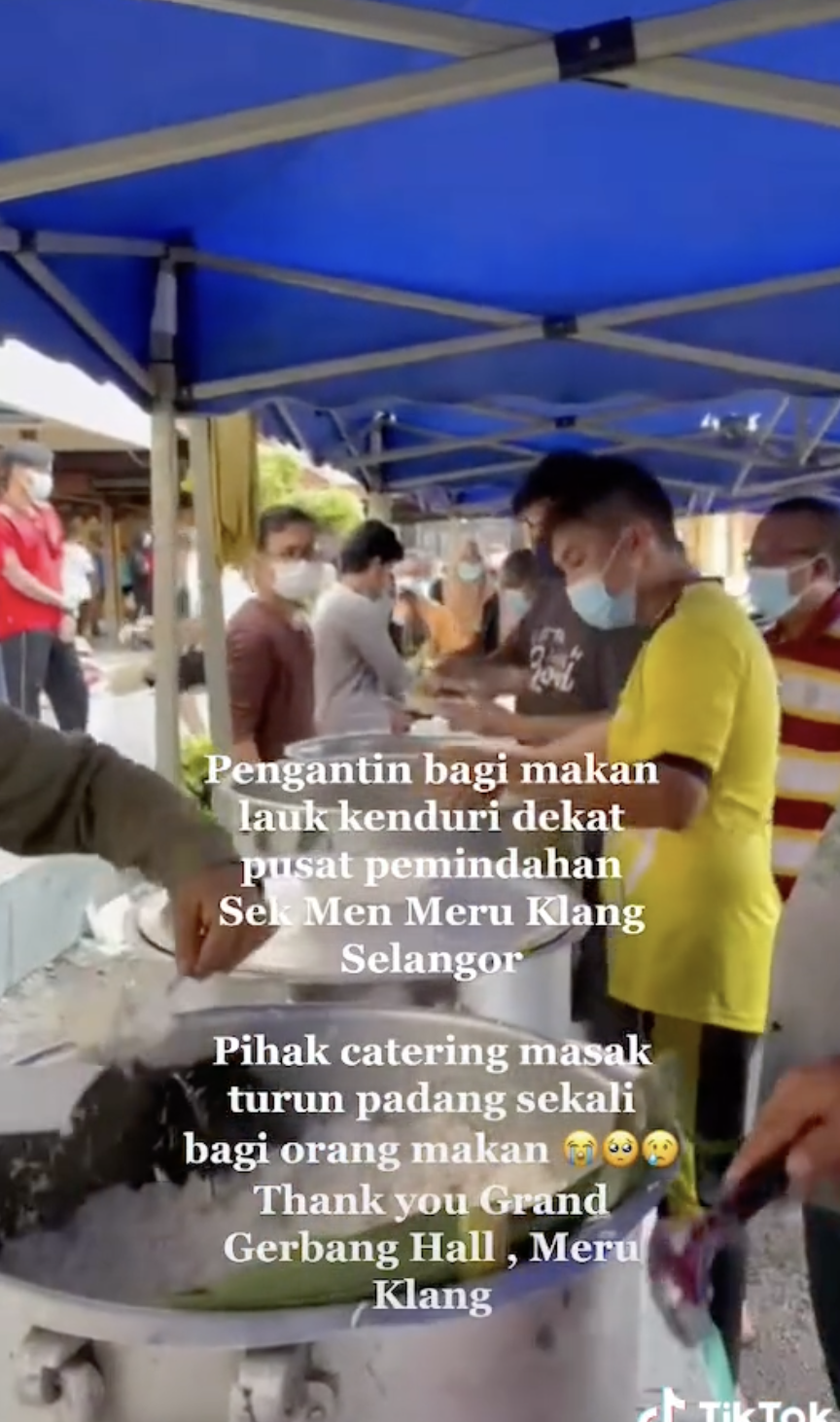 Namun, tular sebuah video di TikTok memaparkan pasangan pengantin terpaksa membatalkan majlis kahwin mereka dan memberi lauk kepada mangsa banjir telah menarik perhatian ramai.