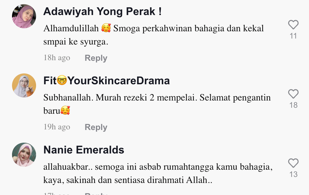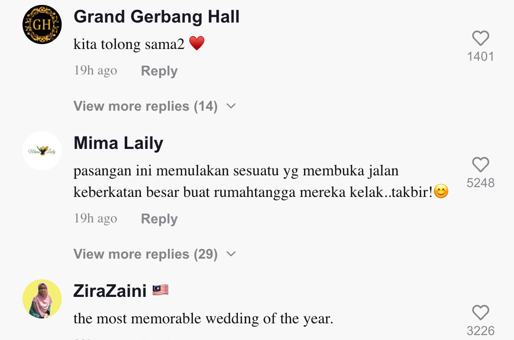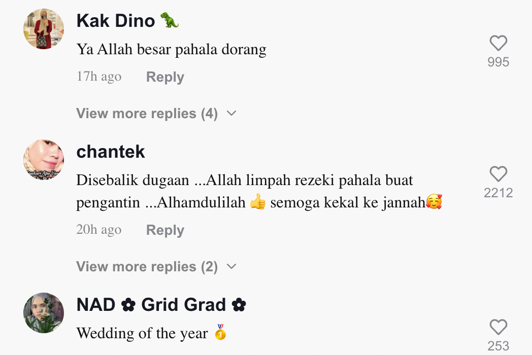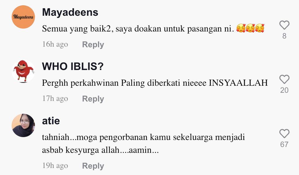 Sementara itu, tinjauan di ruangan komen mendapati rata-rata netizen turut memberikan pujian buat pasangan pengantin tersebut.