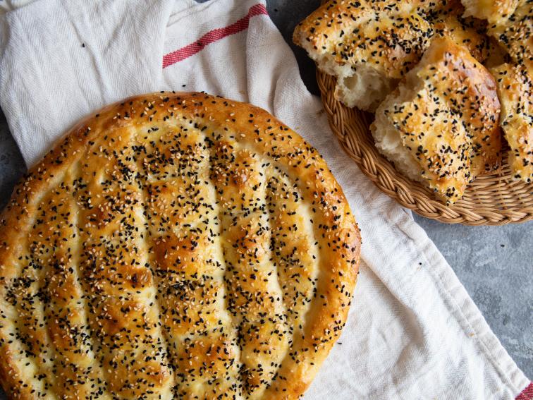 The fluffy bread is made out of layers of thin corn starch and rose-infused milk to give it a distinct aroma. It is often eaten with olives, cheeses, butter, and pastirma beef, and is served for both sahuur as breakfast and iftar as part of a hearty meal.