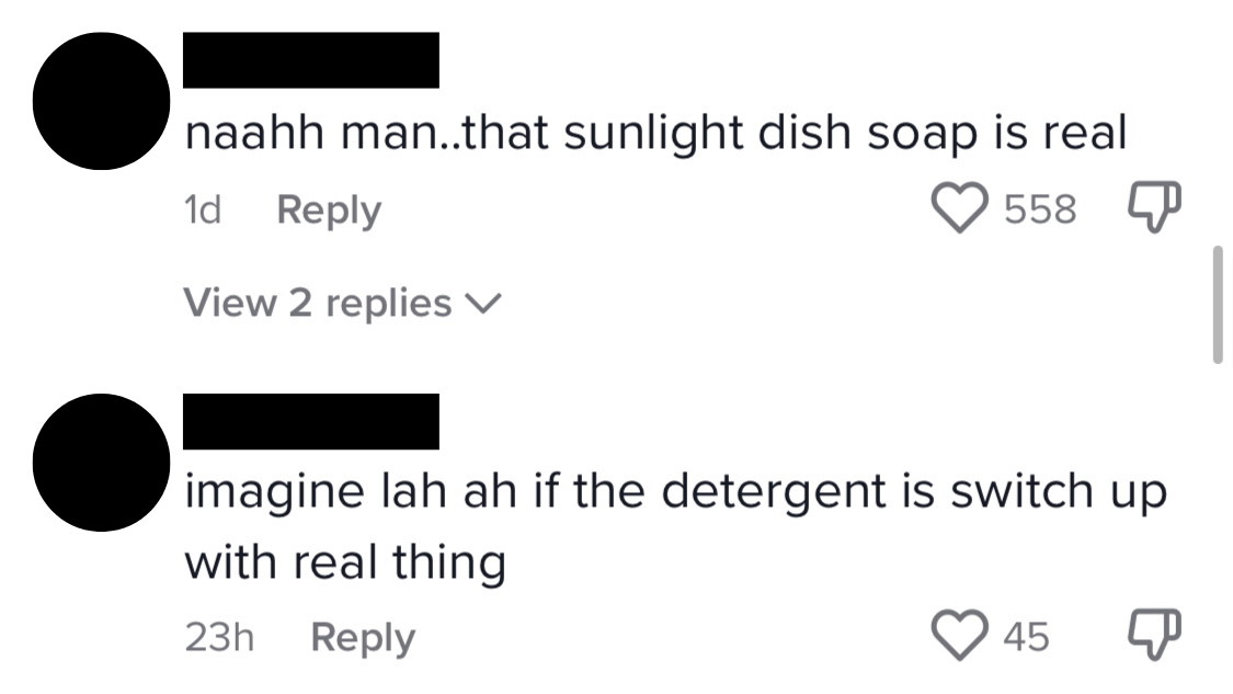 In a TikTok made by @wankatravel, netizens were fairly convinced that the 'detergent' squirted over the cake was actual soap, judging by how they could barely tell the difference in colour and consistency.