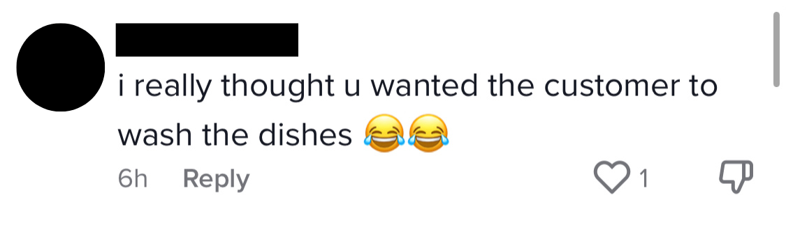One user jokingly said that it was the cafe's way of asking customers to wash their own dishes.