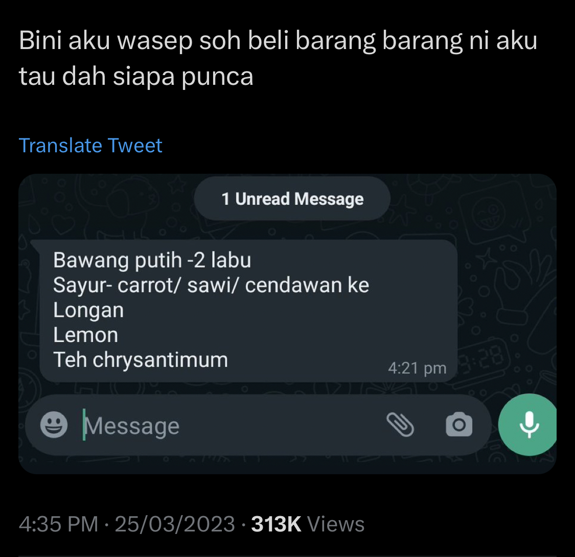Another shared a text from his wife, "My wife texted me telling me to buy these ingredients, I know what the cause is."