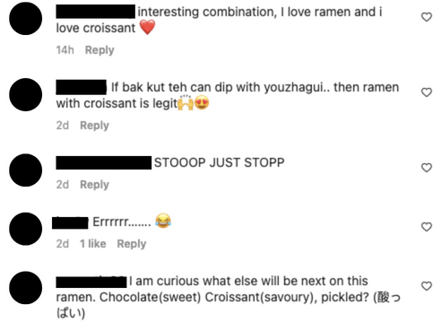 Malaysians have given their mixed reactions under Menya Shi Shi Do's Croissant Ramen post