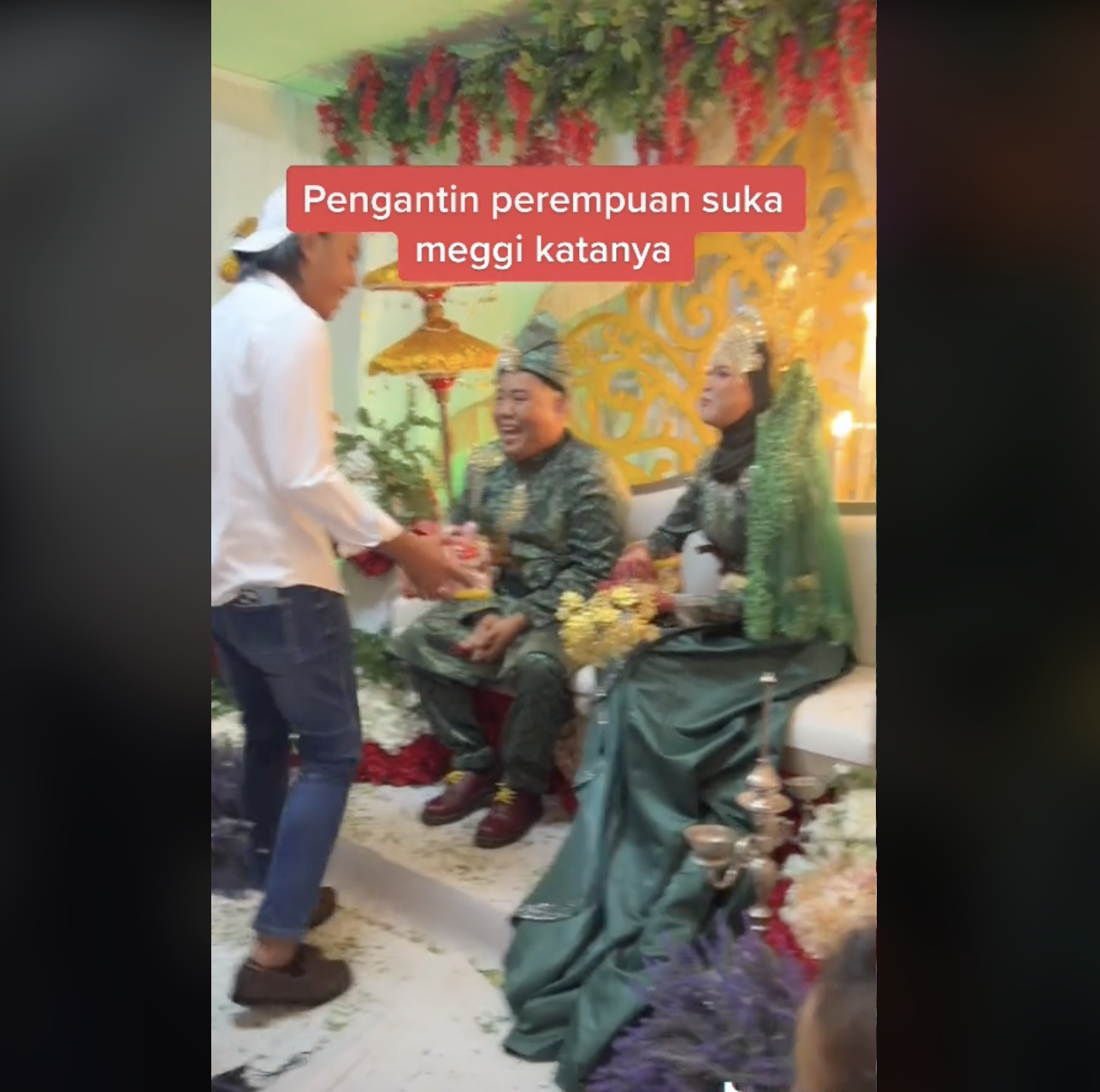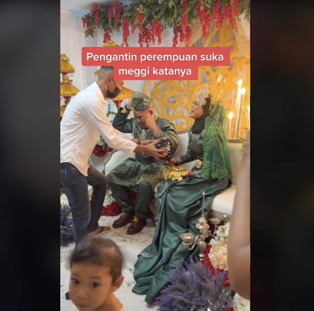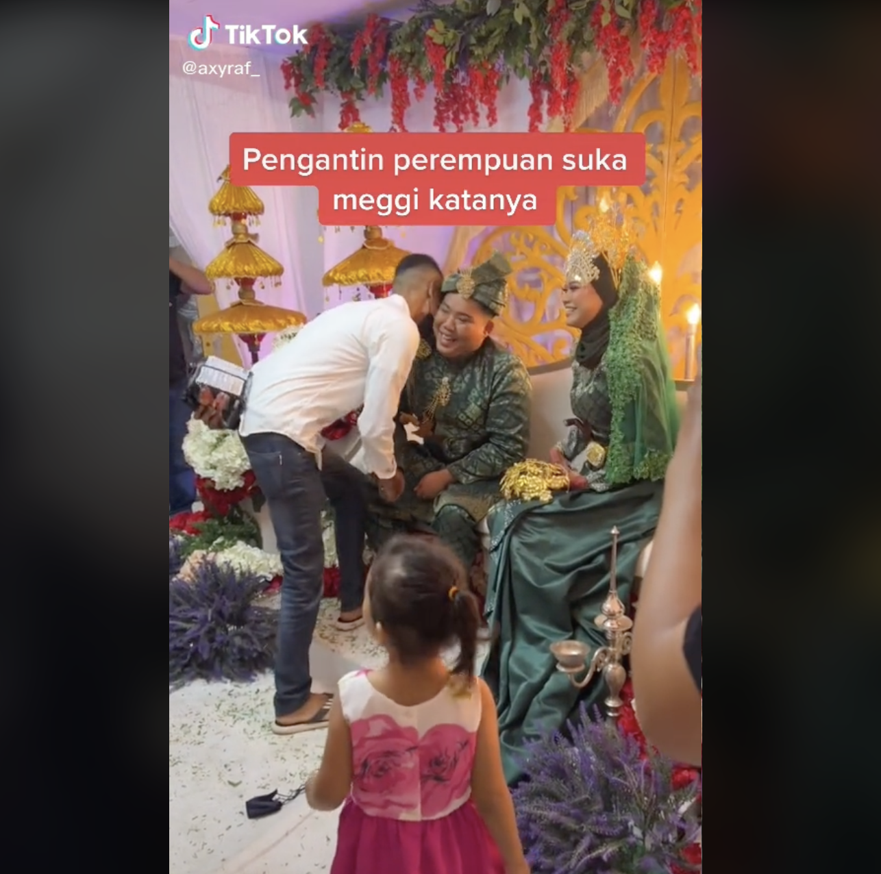 Menerusi video yang dimuat naik oleh @axyraf_ di TikTok, kelihatan sepasang pasangan pengantin baru sedang bersanding di atas pelamin.