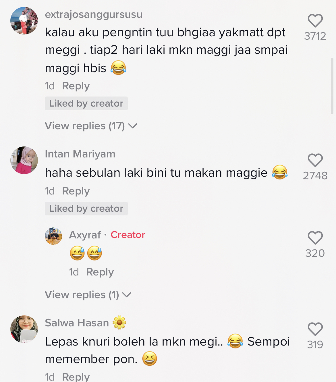 "Lepas kenduri boleh la makan megi, sempoi member-member pun" – Netizen