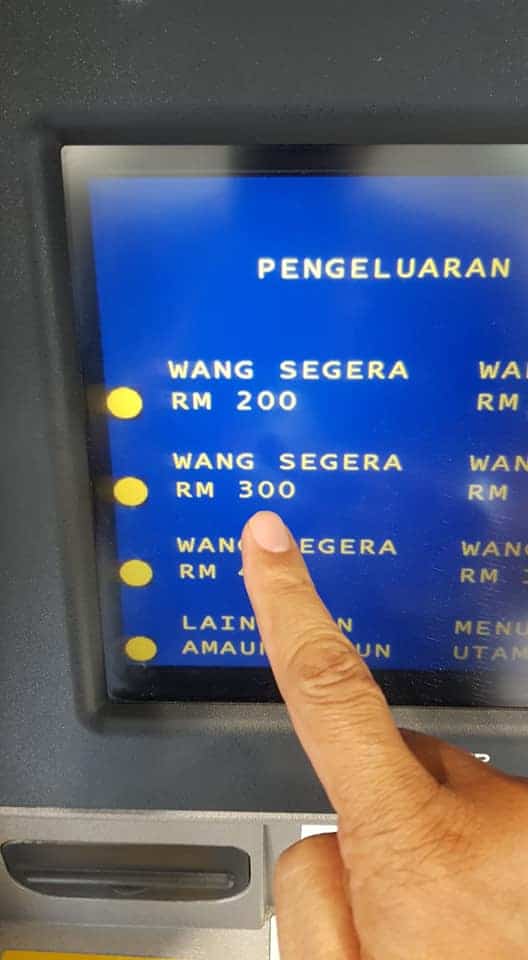 Untuk makluman anda, jumlah maksimum pengeluaran adalah RM300. Pilih, dan terus keluar duit RM10 serba wangi dari mesin tersebut.