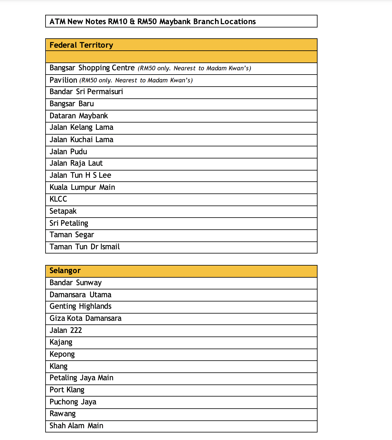 Senarai Lokasi Mesin ATM Maybank untuk penukaran duit raya di seluruh Malaysia: